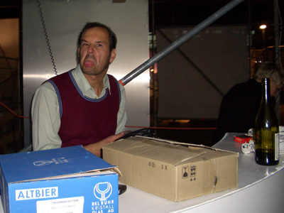 G. hinter der Bar. Nein, er zieht keine Grimasse.